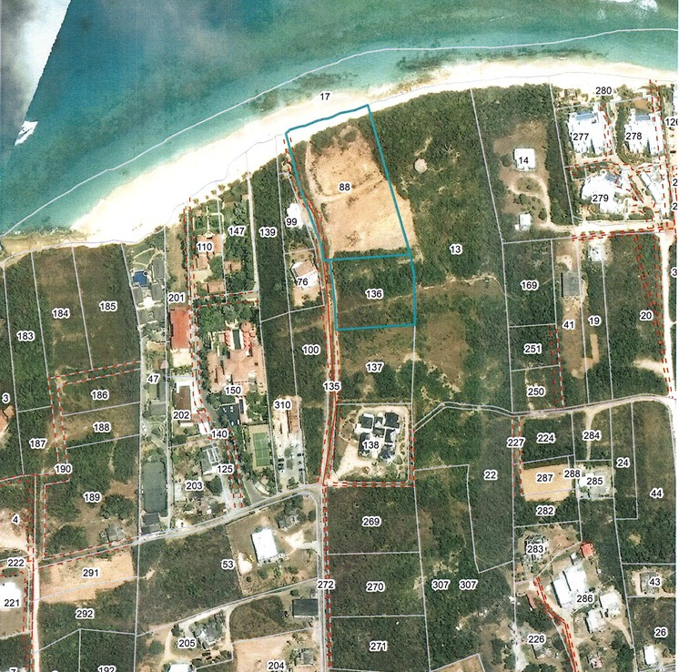 Spectacularly unique beach front parcel offered at US$5,000,000 comprising 2.3 acres with 215’ of beach frontage suitable for a mega villa or a boutique tourism oriented facility as represented by the lighthearted Parcels 88 and 136.